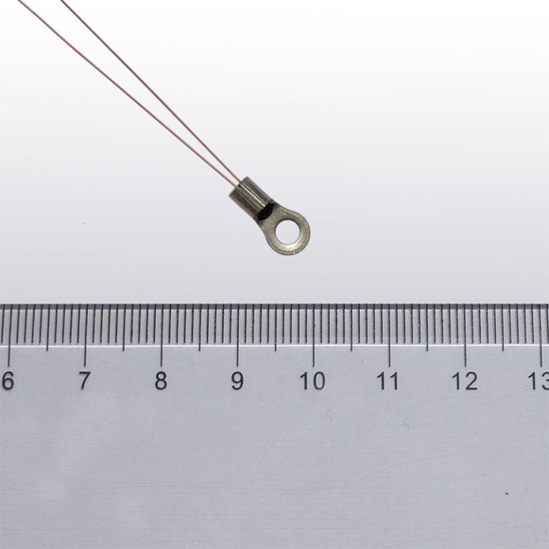The ATH100KL2C is a thermistor assembly with a glass encapsulated thermistor packaged in an extra compact ring lug.The ATH100KL2C series thermistor can be used to measure the temperatures of laser diodes, optical components, etc., with high accuracy and long term stability.